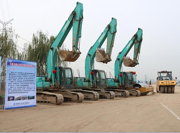 開工儀式結(jié)束后,出席奠基儀式的市、縣、投資方、建設(shè)方有關(guān)領(lǐng)導(dǎo)揮锨為嘉祥公路PPP項(xiàng)目培土奠基。