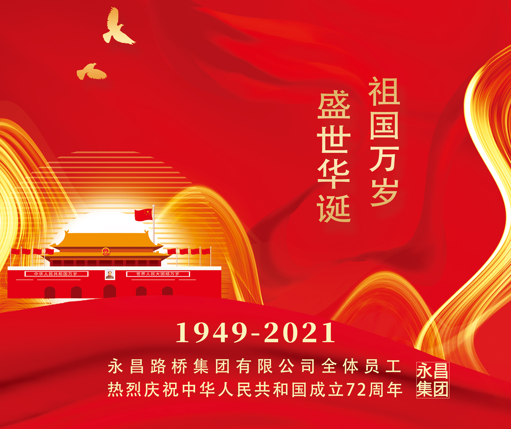 舉國上下齊歡暢,家和國盛萬事興。值此中華人民共和國成立72周年之際,永昌集團滿懷感恩之心,與全國人民一道,共慶這舉國大典,共享這盛世繁華,共同祝愿偉大的祖國母親,生日快樂!