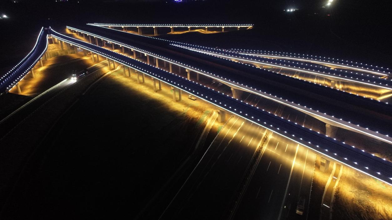 張家樓互通亮化工程順利完成試燈,兗州夜色再添一景