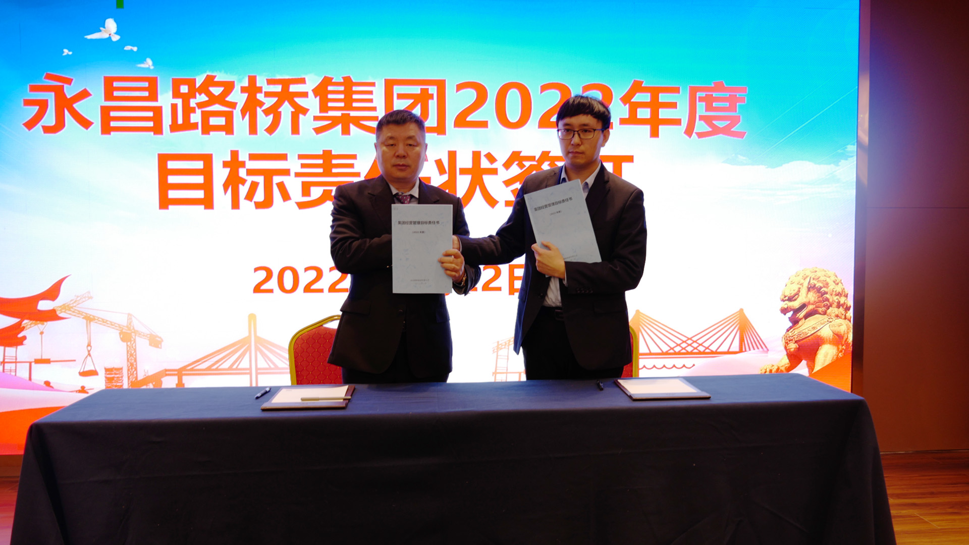 會上,集團副總裁杜宗剛宣讀了《永昌路橋集團2020、2021年度先進表彰名單》,并舉行了頒獎儀式。集團董事長杜宗平分別與集團各中心、工程公司主要負責人簽訂了《目標責任書》。集團各中心、工程公司主要負責人向參會人員匯報了本單位2021年工作總結(jié)和2022年計劃安排,集團董事長杜宗平對他們的述職給予了深刻點評。集團副總裁趙賢慧主持會議。