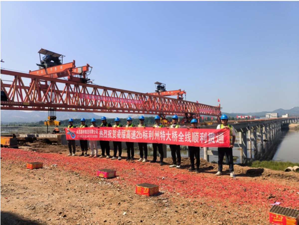 長風(fēng)浩蕩,機(jī)器轟鳴。經(jīng)過項(xiàng)目部全體人員近兩年的努力奮戰(zhàn),8月30日上午10時56分,隨著架橋機(jī)緩緩向前,將最后一片長30米,重達(dá)102噸的T梁精準(zhǔn)又平穩(wěn)地放于橋墩之上,至此由我公司承建施工的遼寧省凌源市至綏中縣高速公路朝陽段全線最長橋梁——利州特大橋圓滿實(shí)現(xiàn)雙線架通。目光所及之處,萬里晴空下的一條銀色長龍,正沿著遼寧沿海經(jīng)濟(jì)帶的方向延展至遠(yuǎn)方。