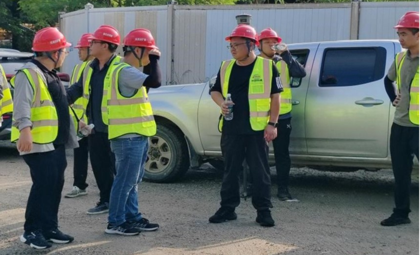 隨后,全體團(tuán)建人員深入項(xiàng)目施工現(xiàn)場(chǎng),大家邊走邊看邊交流,直觀、全面地了解了項(xiàng)目現(xiàn)場(chǎng)的地形地貌、地質(zhì)條件、水文狀況、交通環(huán)境等現(xiàn)場(chǎng)情況,為后續(xù)制定準(zhǔn)確施工方案的提供了第一手資料。