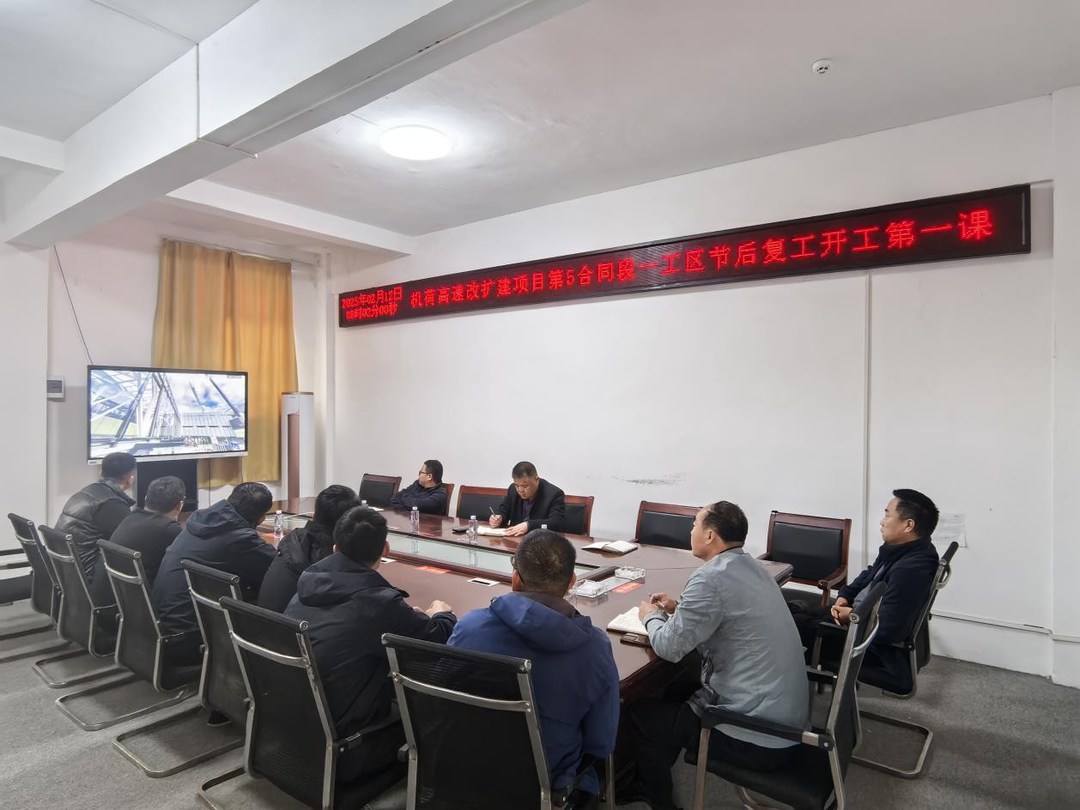 2月12日上午深圳機(jī)荷高速項(xiàng)目一工區(qū)全體領(lǐng)導(dǎo)班組組織開展節(jié)后復(fù)工復(fù)產(chǎn)安全生產(chǎn)開工第一課。
