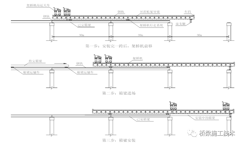 (2)架設(shè)箱梁采用雙導(dǎo)梁架橋機(jī)進(jìn)行