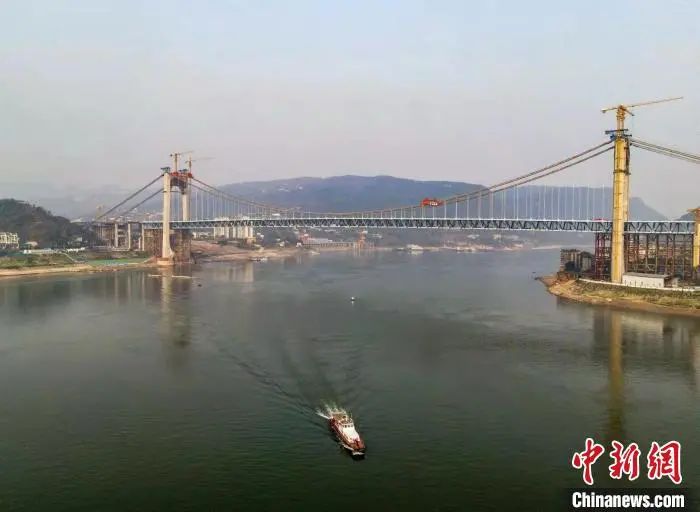 中國(guó)最大跨度公軌兩用懸索橋合龍!