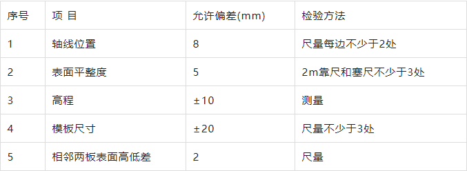 模板的安裝質(zhì)量標(biāo)準(zhǔn)如下: