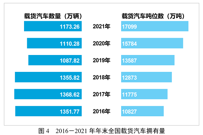 年末全國擁有公路營運汽車1231.96萬輛,比上年末增長5.2%。分結(jié)構(gòu)看,擁有載客汽車58.70萬輛、1751.03萬客位,分別下降4.2%和4.9%;擁有載貨汽車1173.26萬輛、17099.50萬噸位,分別增長5.7%和8.3%,其中,普通貨車406.94萬輛、4923.43萬噸位,分別下降1.7%和增長5.6%,專用貨車60.39萬輛、718.76萬噸位,分別增長19.2%和20.5%,牽引車346.68萬輛、增長11.5%,掛車359.25萬輛、增長7.4%。