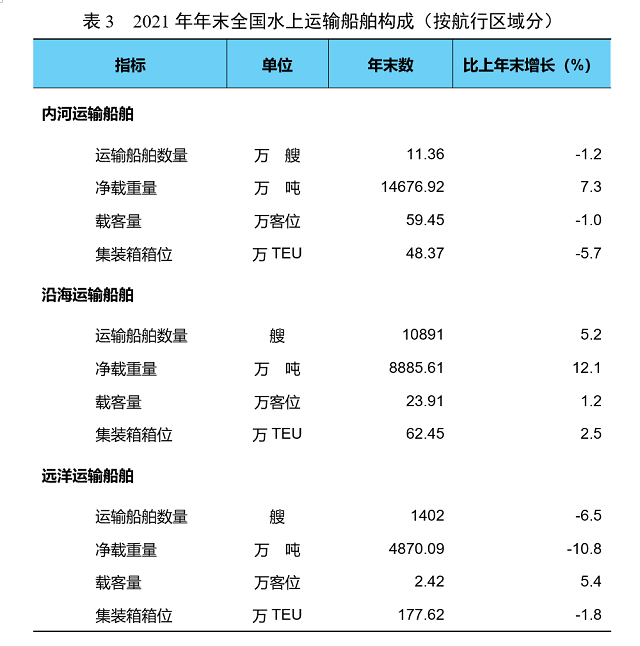 2021年交通運輸行業(yè)發(fā)展統(tǒng)計公報
