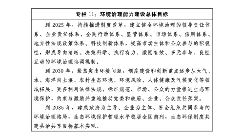 (4)高效能治理體制機制建立健全。生態(tài)文明領(lǐng)域統(tǒng)籌協(xié)調(diào)機制基本健全,生態(tài)環(huán)境治理能力短板加快補齊,生態(tài)環(huán)境治理效能得到提升,形成導(dǎo)向清晰、決策科學(xué)、執(zhí)行有力、激勵有效、多元參與、良性互動的生態(tài)環(huán)境治理體制機制。