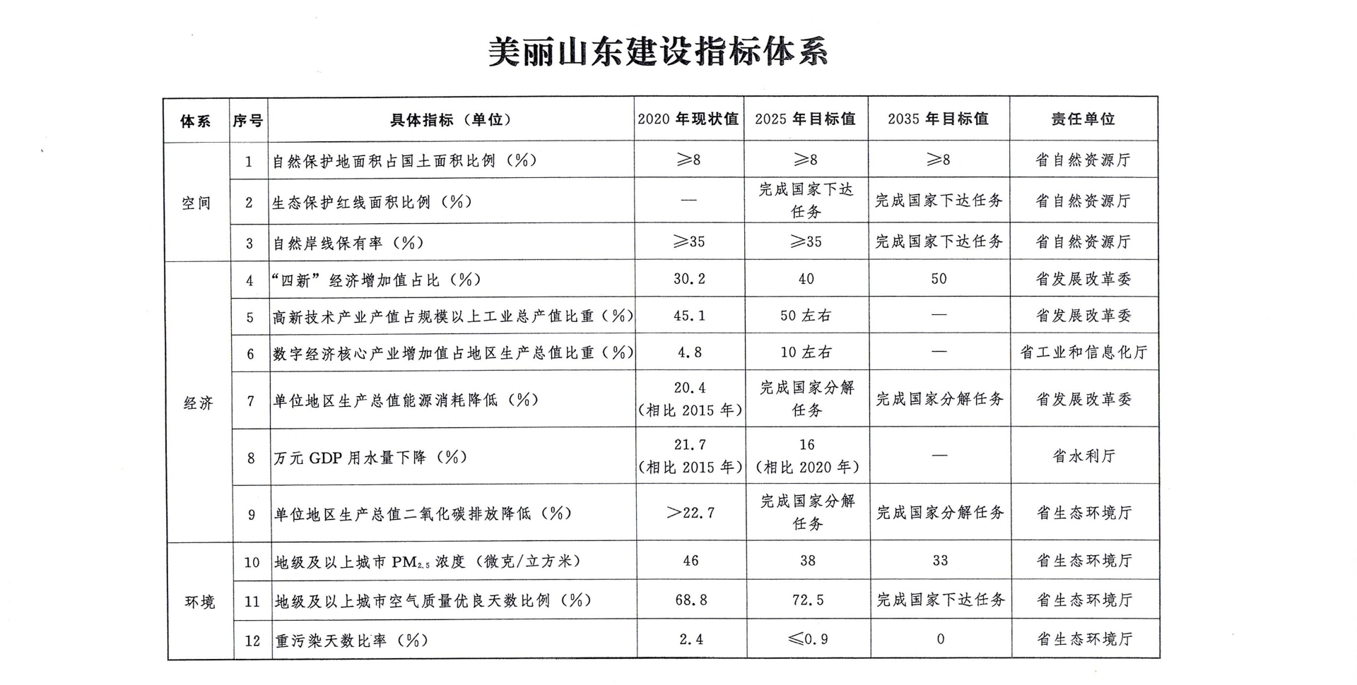 1.近期目標(biāo)(2025年)。綠色低碳轉(zhuǎn)型和生態(tài)文明建設(shè)走在前,生態(tài)環(huán)境質(zhì)量實現(xiàn)新躍升,美麗山東建設(shè)初見成效。