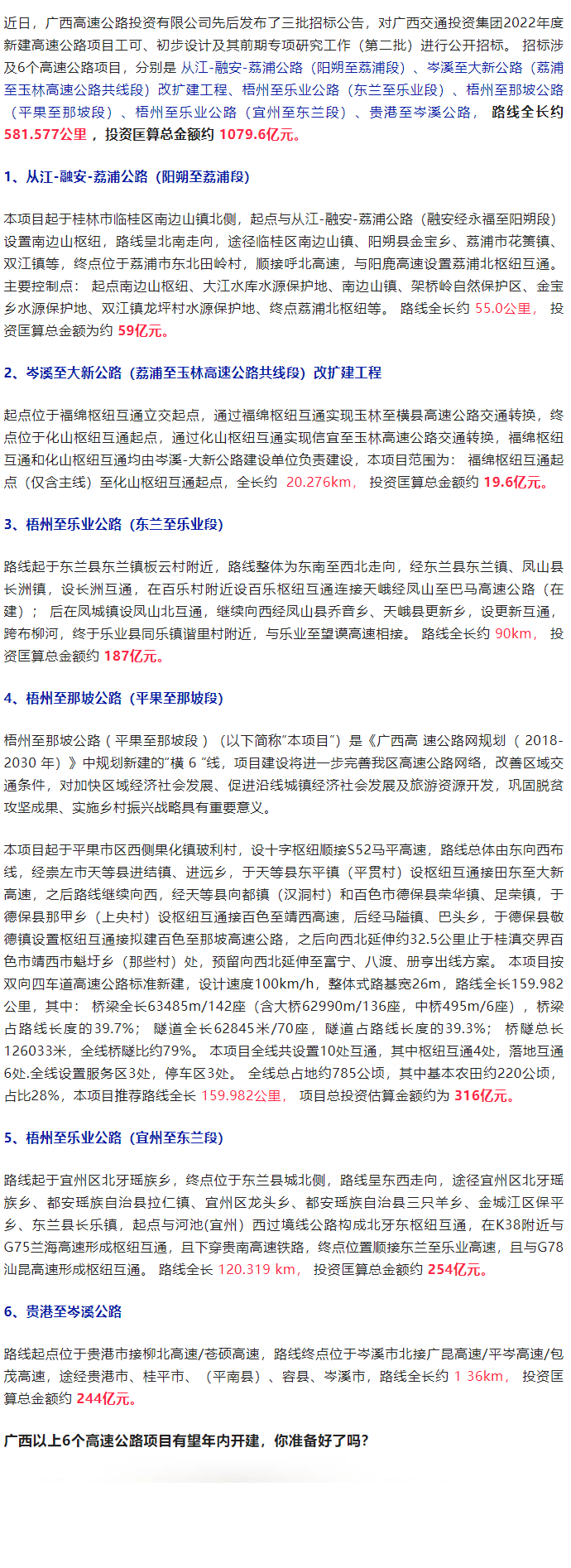 全長(zhǎng)581公里、總投資1080億元!廣西6個(gè)高速公路項(xiàng)目有望年內(nèi)開(kāi)建