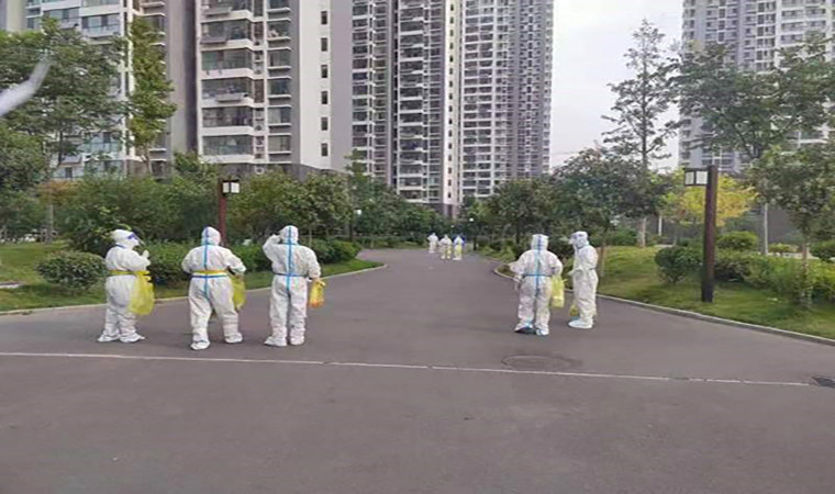 集團總部員工王軍與其他志愿者在小區(qū)做防疫工作