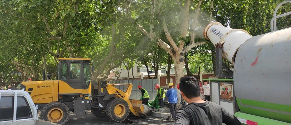 由于共青團(tuán)路項(xiàng)目位于市區(qū)繁華地段,如何在保質(zhì)量、保進(jìn)度的同時(shí),更好的展示企業(yè)安全、文明、綠色施工形象,實(shí)現(xiàn)綠色環(huán)保施工,也是項(xiàng)目履約的主要工作。對(duì)此,項(xiàng)目積極采取錯(cuò)峰施工、合理規(guī)劃交通導(dǎo)行方案,加大對(duì)防塵降噪措施的投入。施工現(xiàn)場(chǎng)圍擋噴淋系統(tǒng)24小時(shí)不間斷降塵,清掃車、灑水車不定時(shí)進(jìn)行路面清理灑水,安排專人疏導(dǎo)交通,盡可能減少對(duì)百姓生活出行影響,維護(hù)城區(qū)市容市貌。