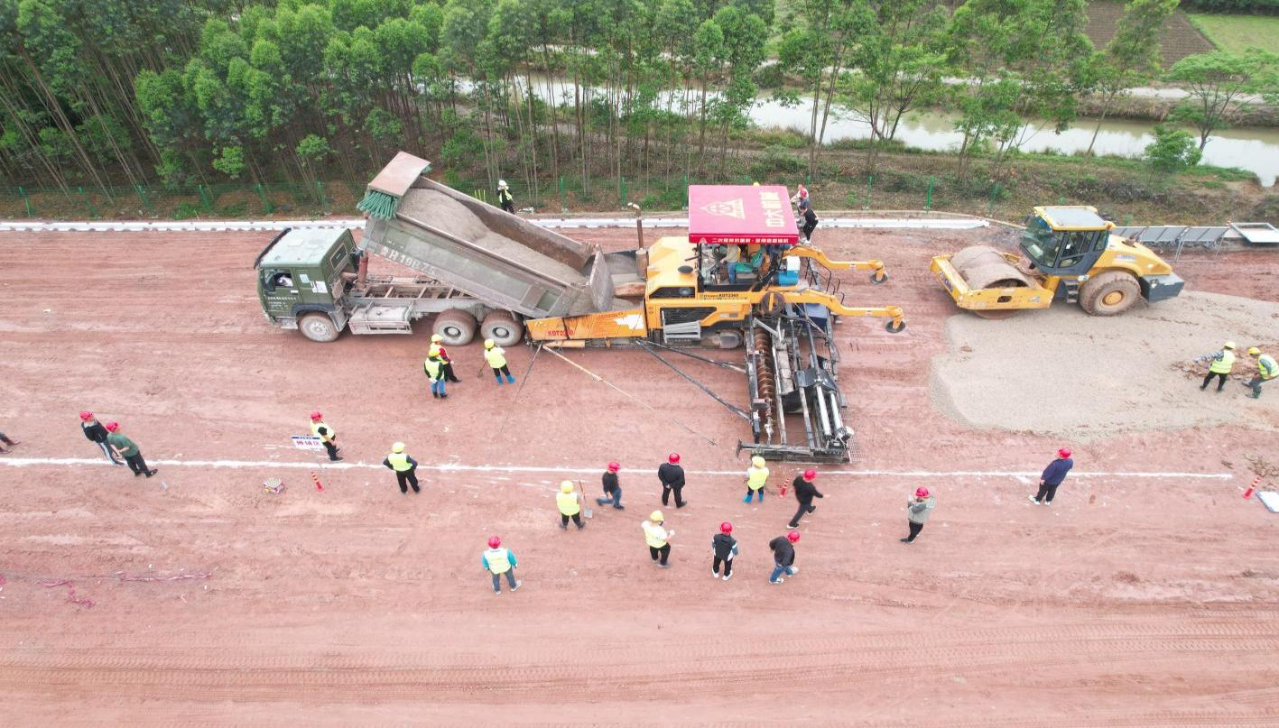 項(xiàng)目路面墊層試驗(yàn)段K2-K3完成攤鋪?zhàn)鳂I(yè)