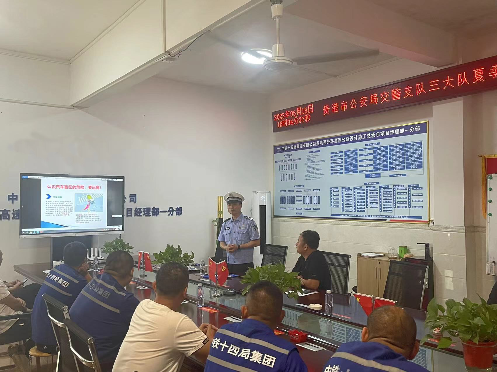 2023年5月15日,貴港市公安局交警大隊(duì)副大隊(duì)長李燕華一行來到貴港西外環(huán)項(xiàng)目開展交通安全進(jìn)企業(yè)宣講活動(dòng)。