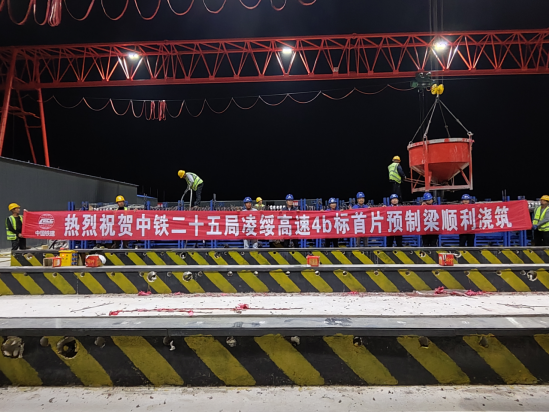 凌綏高速4b標(biāo)項(xiàng)目首片預(yù)制梁順利澆筑