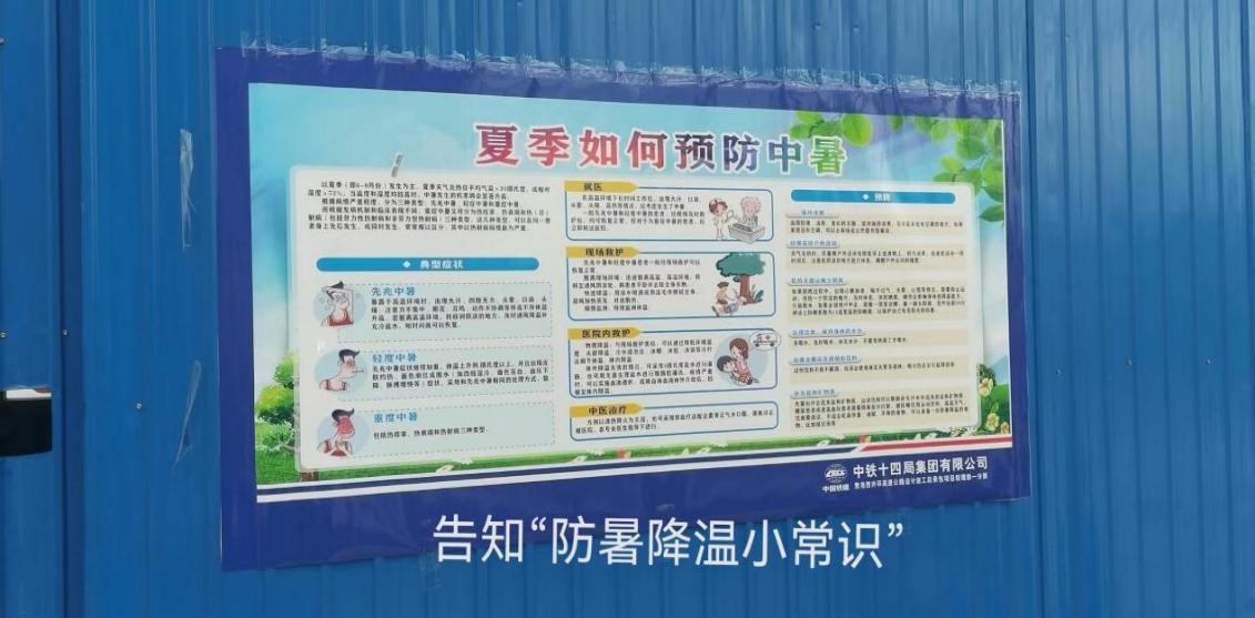 在露天施工現(xiàn)場設(shè)置防暑降溫和事故應(yīng)急小常識展板,圖文并茂介紹中暑的癥狀、原因、急救、預(yù)防等內(nèi)容;通過內(nèi)部業(yè)務(wù)群定期發(fā)布高溫預(yù)警和中暑事故救援視頻案例;同時根據(jù)天氣情況,適時調(diào)整作業(yè)時間,要求上午早上班、早下班,下午晚上班晚下班,主動避開高溫時間段降低戶外作業(yè)造成中暑事故的可能性。