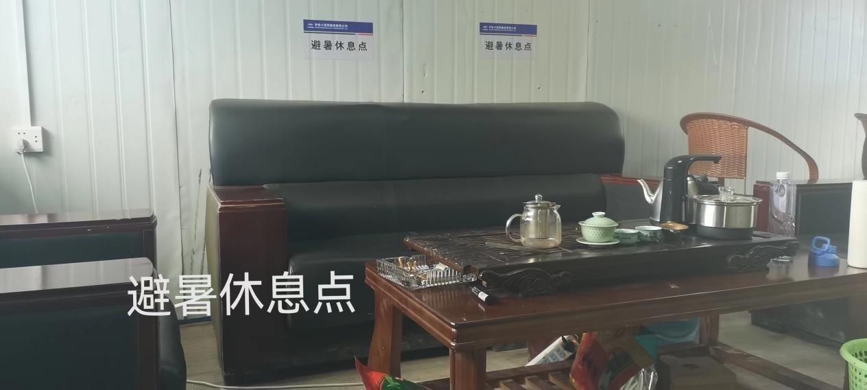項(xiàng)目部在主要施工點(diǎn)設(shè)立“緊急避暑處”、“避暑休息點(diǎn)”、“太陽傘遮陽點(diǎn)”;并設(shè)立了降溫專屬辦公室,加設(shè)空調(diào)間,供工作人員緊急避暑。