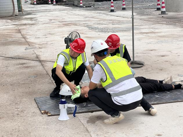 據(jù)悉,本次應(yīng)急救援演練以作業(yè)人員夏季施工中暑事故為背景,項目部應(yīng)急領(lǐng)導(dǎo)小組在接到現(xiàn)場險情報告后,迅速啟動中暑事故應(yīng)急救援預(yù)案,在各應(yīng)急小組的全力協(xié)作下,圓滿完成此次救援演練活動。隨后,項目部展開中暑事故急救知識培訓(xùn),在實(shí)戰(zhàn)中提升應(yīng)急處置能力。貴港市交通局、項目公司、項目參建單位等共計46人到場參與演練。