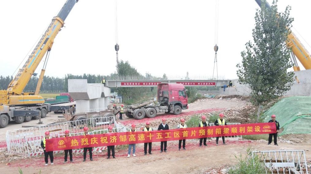 項(xiàng)目快訊|濟(jì)鄒高速十五工區(qū)首片箱梁順利安裝完成
